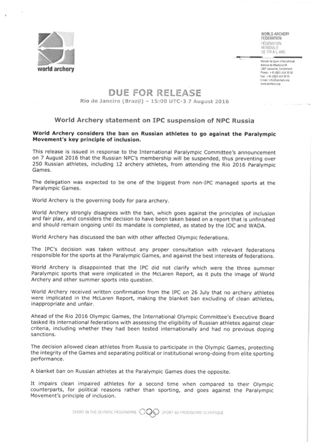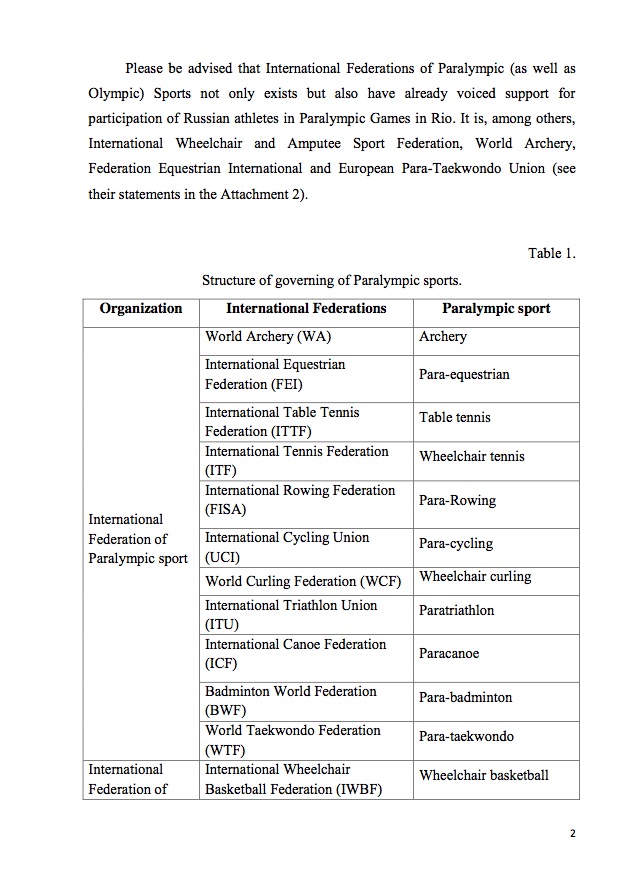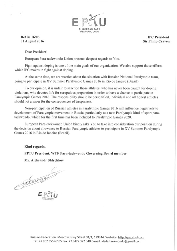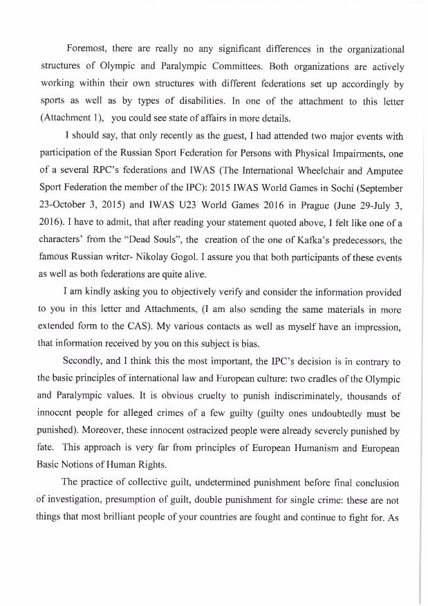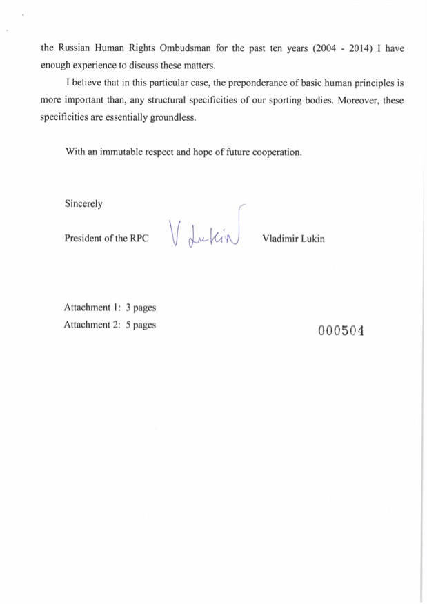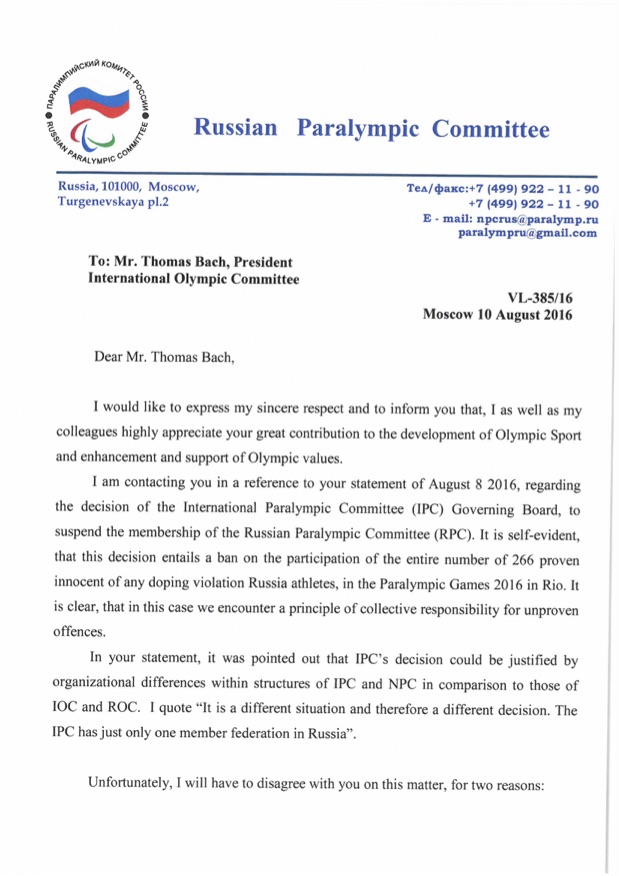 Open letter of RPC President Vladimir Lukin to IOC President dr. T.Bach