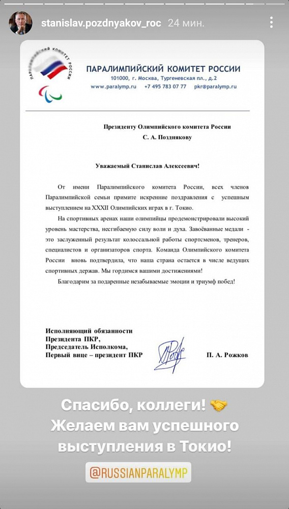 The Paralympic family sincerely congratulates the ROC team on their successful performance at the XXXII Olympic Games in Tokyo.