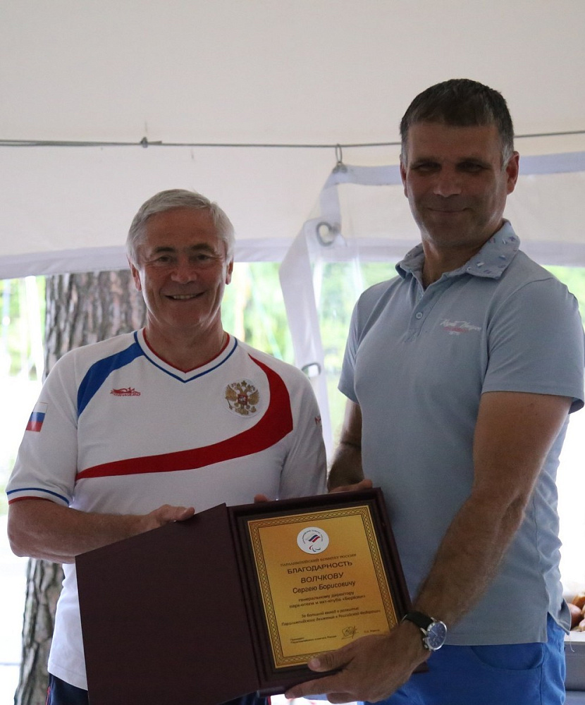 During visiting the competition Head of the Russian Paralympic Committee awarded Mr. Sergey Volchkov, the Manager of the Berezki Park Hotel and Yacht Club, honoured master of sport of Russia and world champion, gratitude for supporting Russian national sailing team for persons with physical impairments as well as for assistance in organizing training and competition activities.