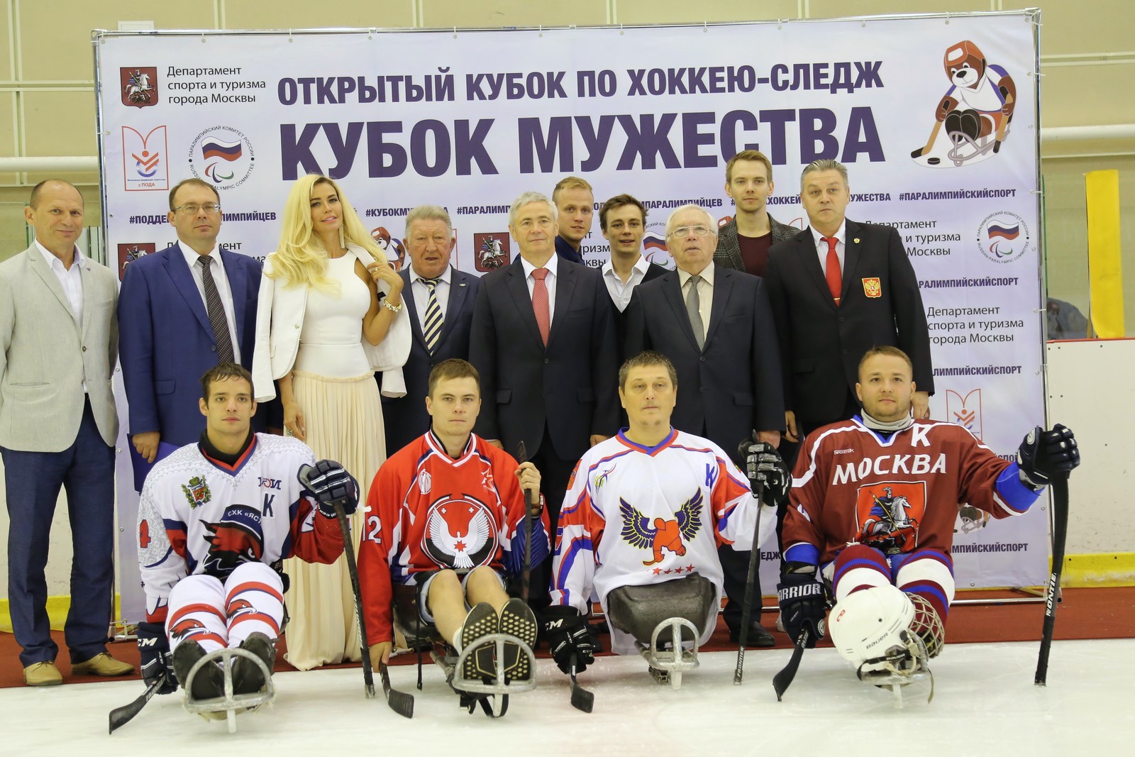 The rostrums greeted the guests who were honored to attend the ceremony: the president of the Russian Paralympic Committee Vladimir Lukin, the chairman of the Executive Committee, the first vice-president of the RPC, the honored trainer of Russia Pavel Rozhkov, the head of the sport department of the Sport and Tourism Department of Moscow Anatoly Ratnikov, the honorary vice-president of the Paralympic Committee of Russia Lev Seleznev, General Director of the Sports and Fitness Center "Strogino" Sergei Zaitsev, senior coach of the Russian national sledge hockey team Alexander Shelyanin, Head of the Youth Hockey League Development Directorate and the Women's Hockey League of the Continental Hockey League Sergey Yakovlev, the actors of the series "Molodezhka" Ilya Korobko, Ivan Dubrovsky, Yevgeny Kulik, and others.