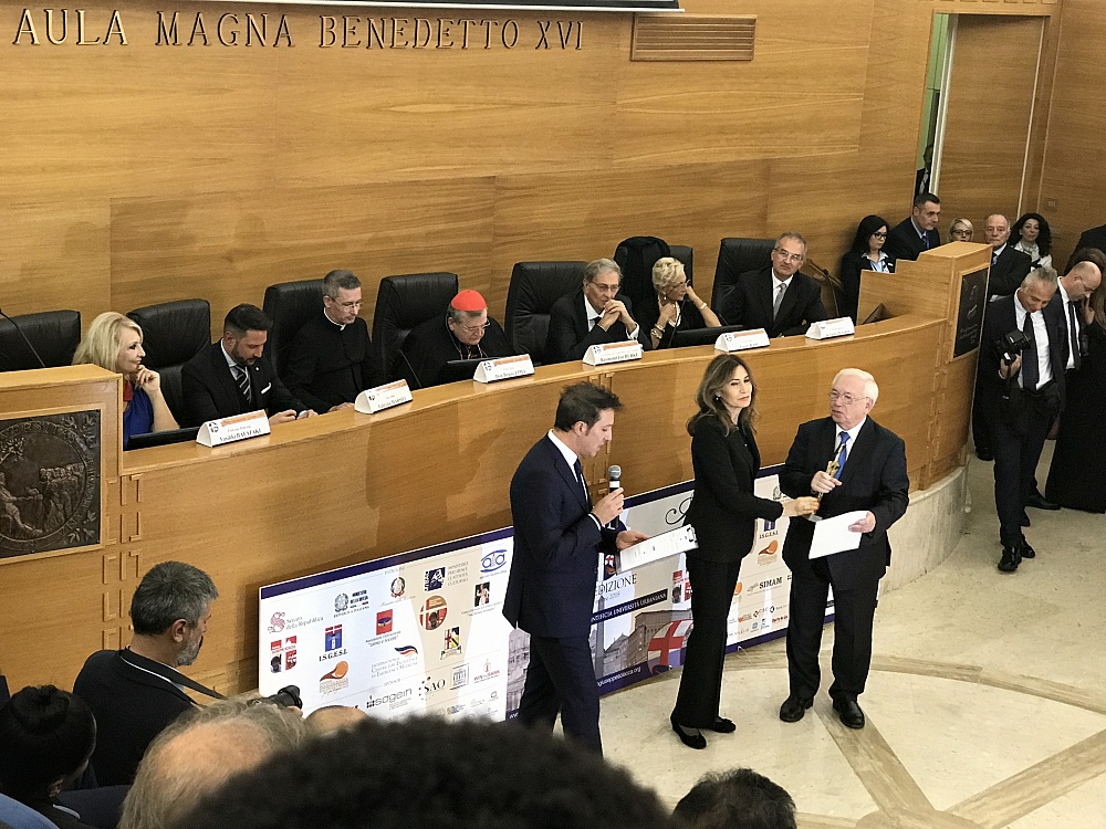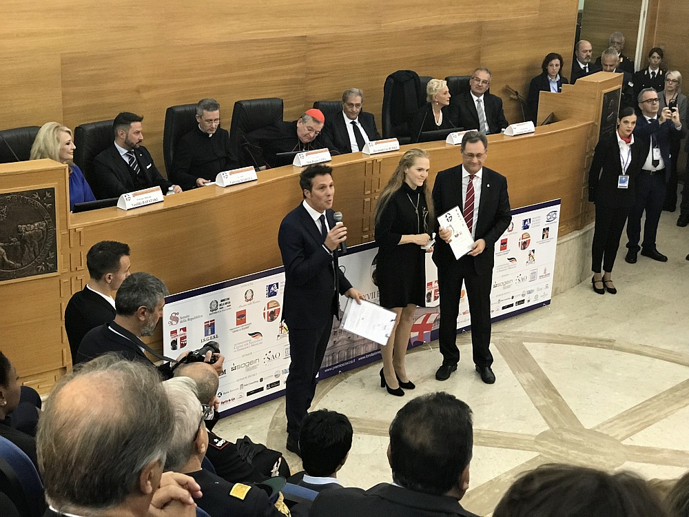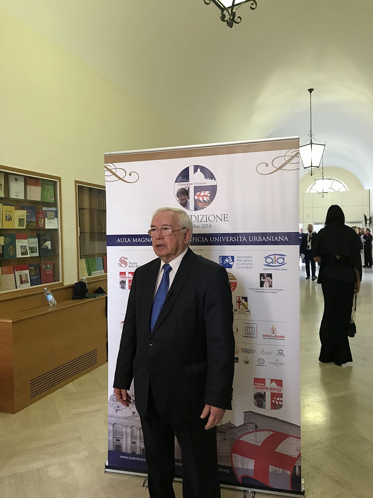 The Award Ceremony took place at the Pontifical Urban University of Rome, Italy. Among participants were; the Hon. Matteo Salvini, the Italian Deputy Prime Minister, Minister of Interior, the Honorary President of the Foundation “Giuseppe Sciacca” His Eminence the Most Revered Cardinal Raymond Leo Burke, and the Eminent Cardinal Willem J. Eijk. The aim of the Giuseppe Sciacca Award is to draw public attention to outstanding and prominent members of our society.