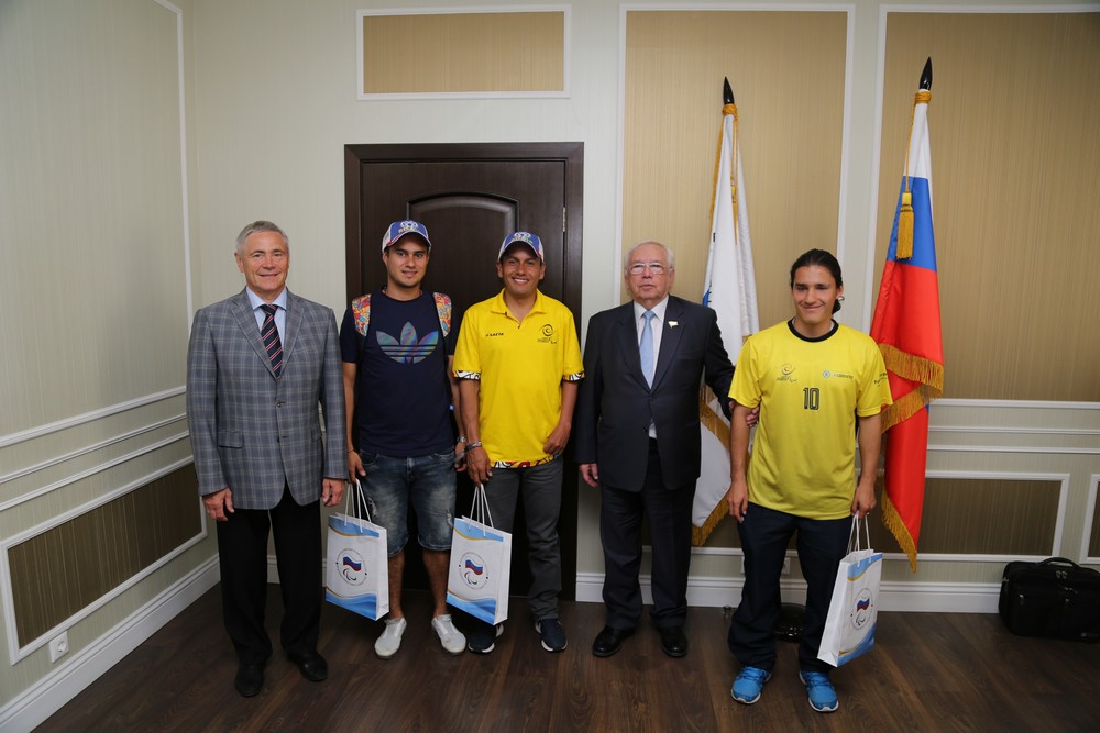 The president of RPC Vladimir Lukin and the Chairman of the Executive Committee, the First Vice-President of RPC Pavel Rozhkov met at the offices of RPC with the trainer of the Colombian national football team for persons with cerebral palsy Hans Duran Lopez, with a member of the Colombian national football team for persons with cerebral palsy Fabio-Nelson Suarez-Kortez and with a member of the Colombian national football team for persons with visual impairment Juan-David Perez-Quintero, who came to Russia in order to watch the matches of the 2018 FIFA World Cup.