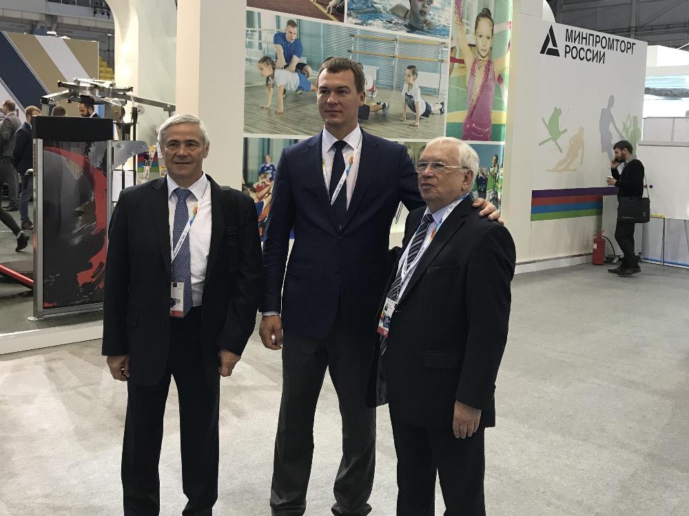 During the visit of the exhibition, Vladimir Lukin and Pavel Rozhkov met with the Minister of Sports of the Russian Federation, Olympic champion Pavel Kolobkov, the Deputy Minister of Sports Marina Tomilova, the State Secretary-Deputy Minister of Sports Natalia Parshikova, the president of the State Duma Committee on Physical Culture and Sports, tourism and youth affairs, Mikhail Degtyarev, and with other heads of all-Russian sports federations, with leaders of various regions of the Russian Federation and with heads of executive authorities of the Russian Federation in the field of physical culture and sports, etc. The exhibition is the largest sports business platform with the participation of top officials of the state, it hosts more than 3,000 participants (90% of the delegates are heads of organizations and top managers).
