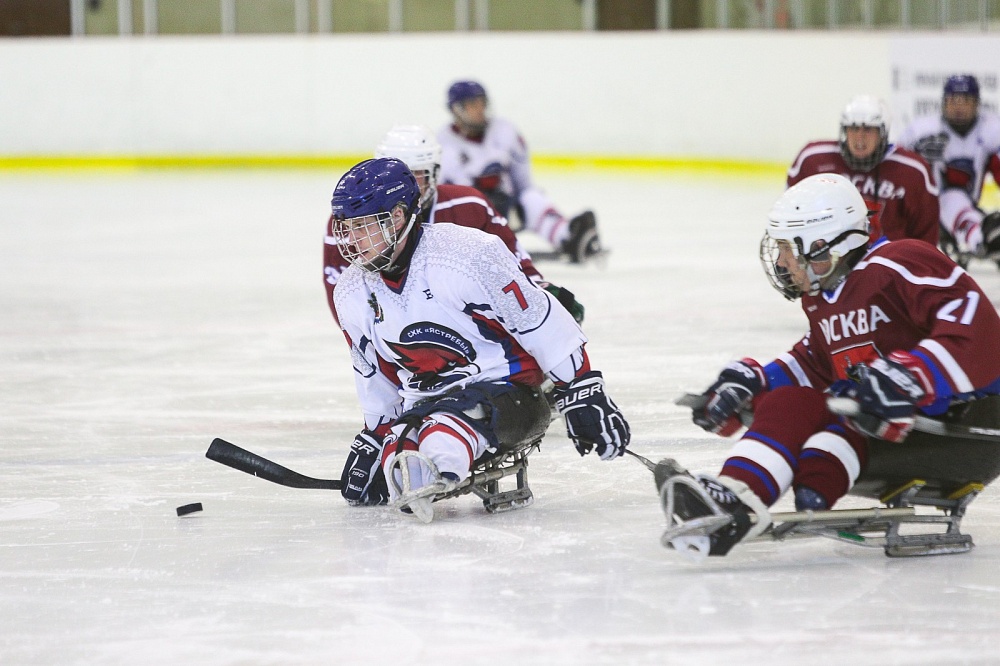 The first competition day of the Para Ice Hockey Tournament "Cup of Courage" was finished at the Sport Palace «Yantar» in Moscow, held by the Moscow Federation of Sports for Persons with Physical Impairments, by the Department of Sports and Tourism of Moscow with the support of the Russian Paralympic Committee.